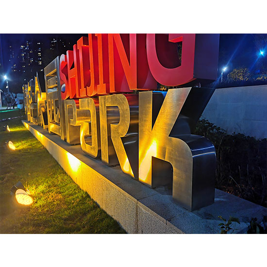 落地字,又稱景觀字,落地藝術(shù)字等,就是把字體制作成型,直接安裝在在面上、草坪上,落地字的特點(diǎn)是,外觀厚實(shí)、效果震撼。主要安裝于:廣場(chǎng)、酒店、公園、綠道、商業(yè)中心···