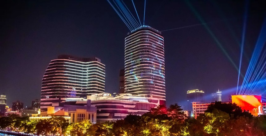 全彩LED燈光是通過安裝帶DMX512控制芯片的燈具,再通過電腦、控制器進行編程,使燈光能按程序展現(xiàn)不同效果,常用效果有炫彩、跑馬、漸變、像素屏。